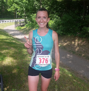 We turned around at mile 5 on the out-and-back course which gave me an opportunity to take my mind off of the rocks and gravel and cheer on the runners heading out. I calculated that I had around 2 minutes on the next female and figured that I would need to just hold onto my current pace. I wasn't sure if she was going to try a negative-split technique, where she could run back faster than she ran out. I assumed she wasn't going for that and that maintaining my pace would be enough.